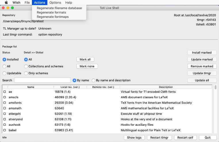 Infrastructure: System-level tlmgr configuration file supported; verify package checksums; if GPG is available, verify signature of network updates. These checks happen with both the installer and tlmgr. If GPG is not available, updates proceed as usual.